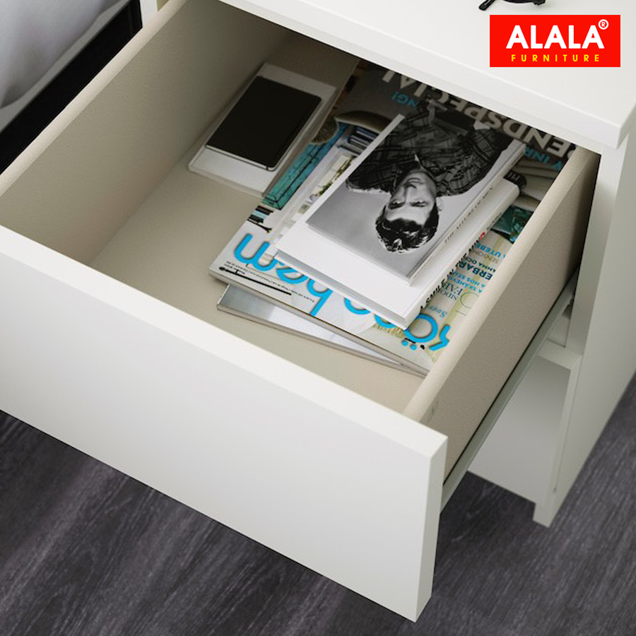 - Chất liệu: Gỗ MDF đạt tiêu chuẩn E1 nhập khẩu Thái Lan được phủ Melamine chống nước, bền bỉ và an toàn cho sức khỏe.