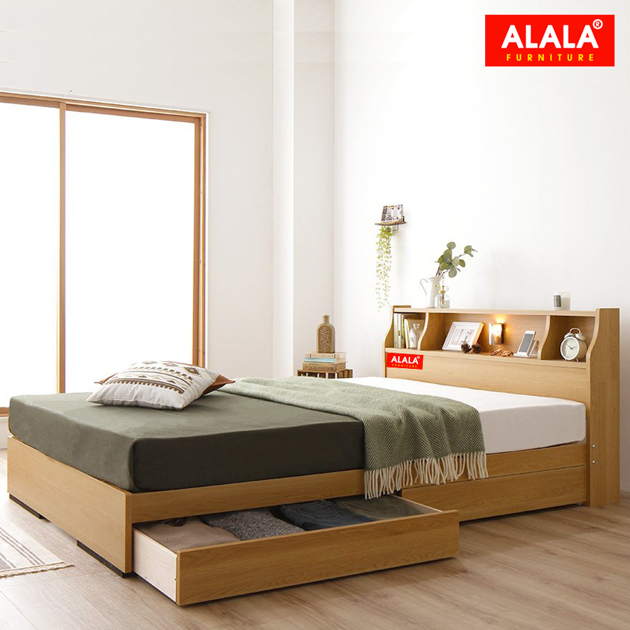 + Giường cao cấp được thiết kế thêm 2 hộc chứa quần áo, đồ dùng cá nhân với kích thươc rộng 1m và sâu 60cm được tích hợp bên dưới giường nên rất gọn gang và tiện dụng.