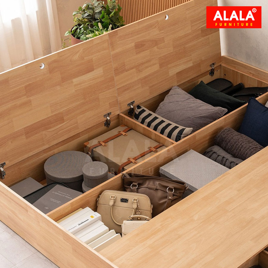 + Giường cao cấp được thiết kế thêm 2 hộc chứa quần áo, đồ dùng cá nhân với kích thươc rộng 1m và sâu 60cm được tích hợp bên dưới giường nên rất gọn gang và tiện dụng.