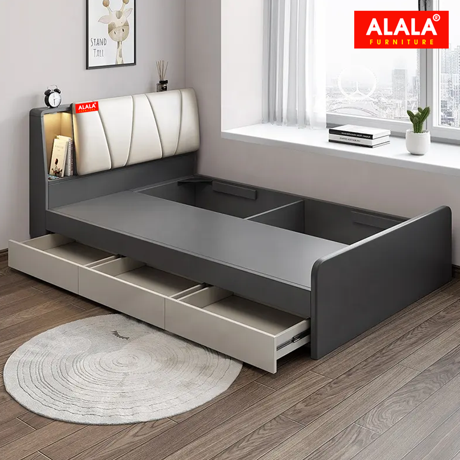 + Giường cao cấp được thiết kế thêm 2 hộc chứa quần áo, đồ dùng cá nhân với kích thươc rộng 1m và sâu 60cm được tích hợp bên dưới giường nên rất gọn gang và tiện dụng.