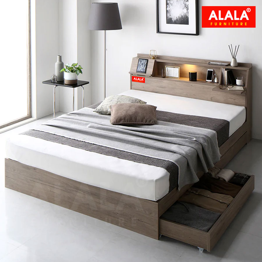 + Giường cao cấp được thiết kế thêm 2 hộc chứa quần áo, đồ dùng cá nhân với kích thươc rộng 1m và sâu 60cm được tích hợp bên dưới giường nên rất gọn gang và tiện dụng.