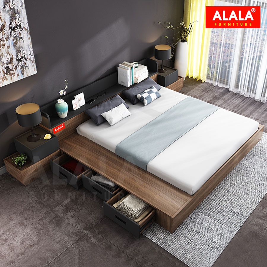 - Chất liệu: Gỗ ALALA đạt tiêu chuẩn E1 nhập khẩu Thái Lan được phủ Melamine chống thấm.