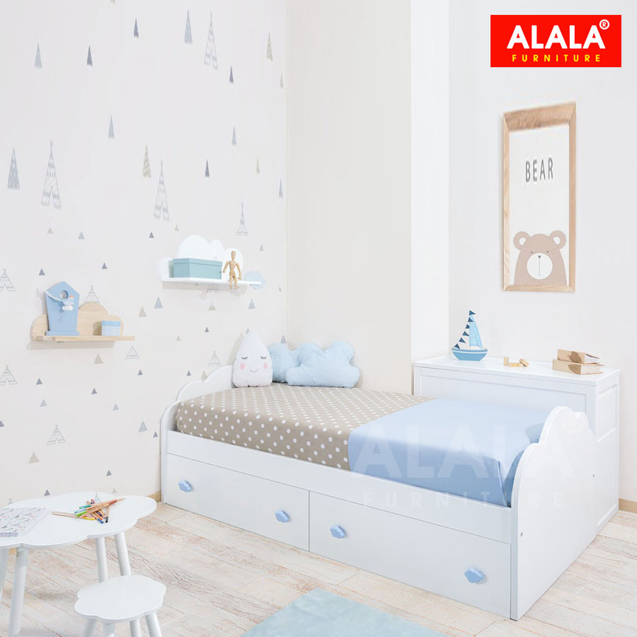 - Chất liệu gỗ ALALA tiểu chuẩn E1 cao cấp nhập khẩu Thái Lan được phủ Melamine chống thấm, an toàn cho sức khỏe.