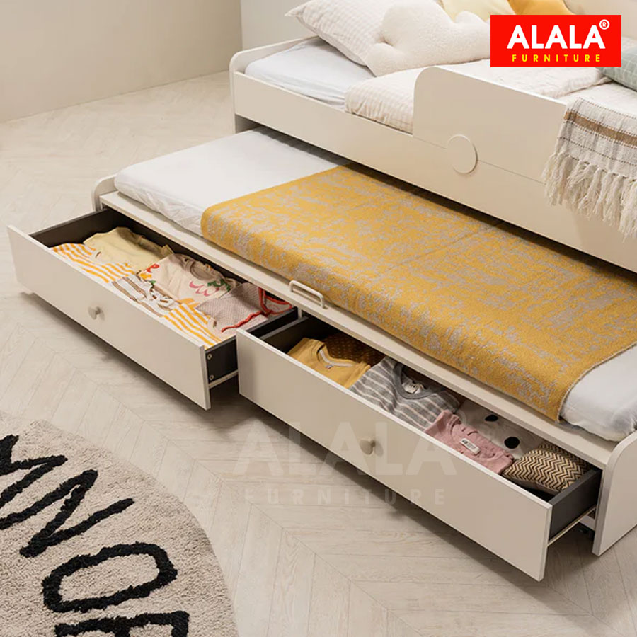 + Giường tầng cao cấp được thiết kế thêm 1 tầng dưới có thể kéo ra khi sử dụng và đẩy vào khi chưa cần sử dụng điều này giúp tiết kiệm diện tích và tận dụng được nhiều không gian trong nhà, và có thể sử dụng cho nhiều thành viên trong gia đình hoặc có thể tận dụng để chứa quần áo, đồ dùng cá nhân... Rất gọn gàng và tiện dụng.