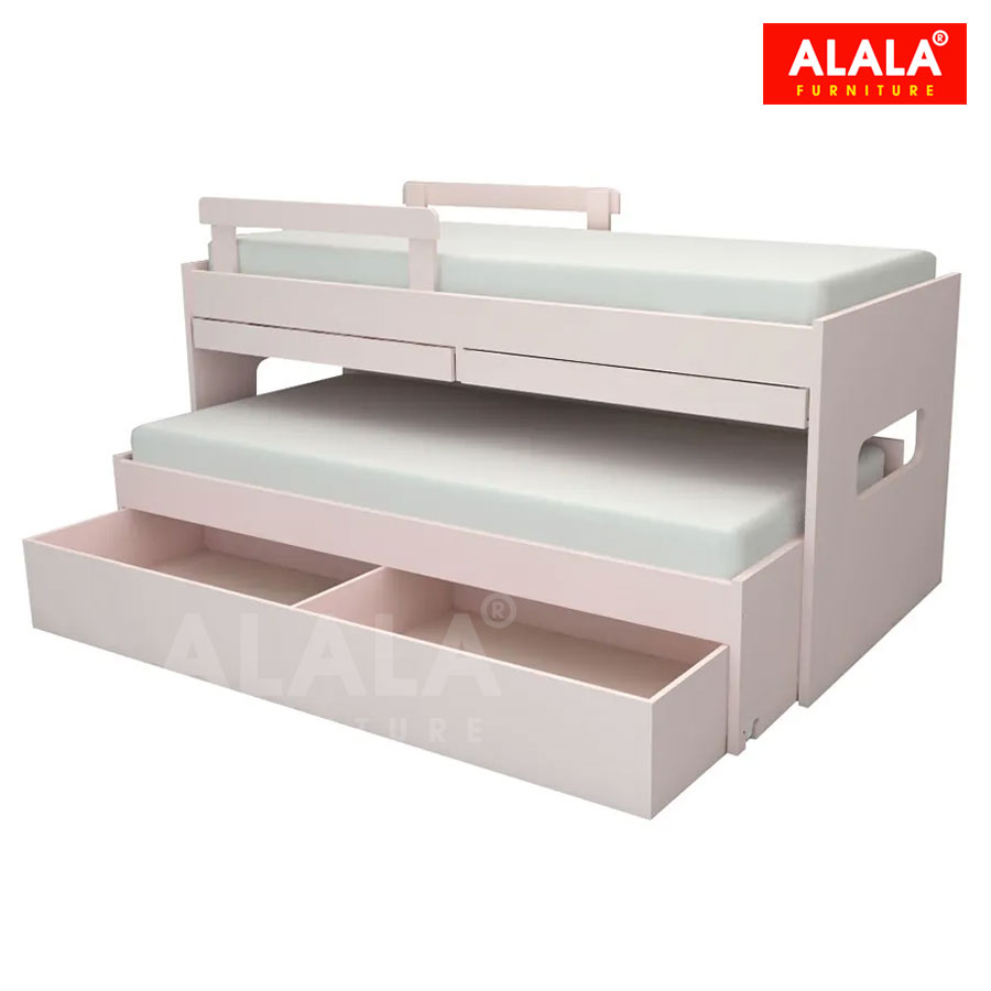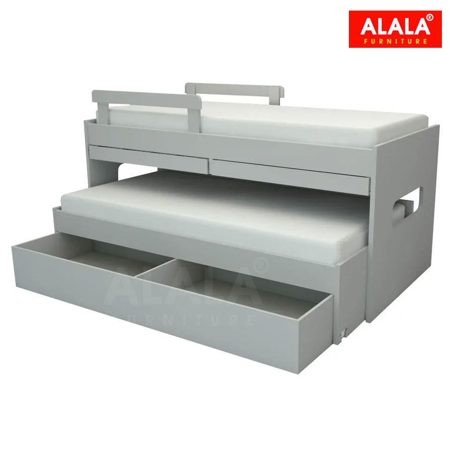 + Giường tầng cao cấp được thiết kế thêm 1 tầng dưới có thể kéo ra khi sử dụng và đẩy vào khi chưa cần sử dụng điều này giúp tiết kiệm diện tích và tận dụng được nhiều không gian trong nhà, và có thể sử dụng cho nhiều thành viên trong gia đình hoặc có thể tận dụng để chứa quần áo, đồ dùng cá nhân... Rất gọn gàng và tiện dụng.