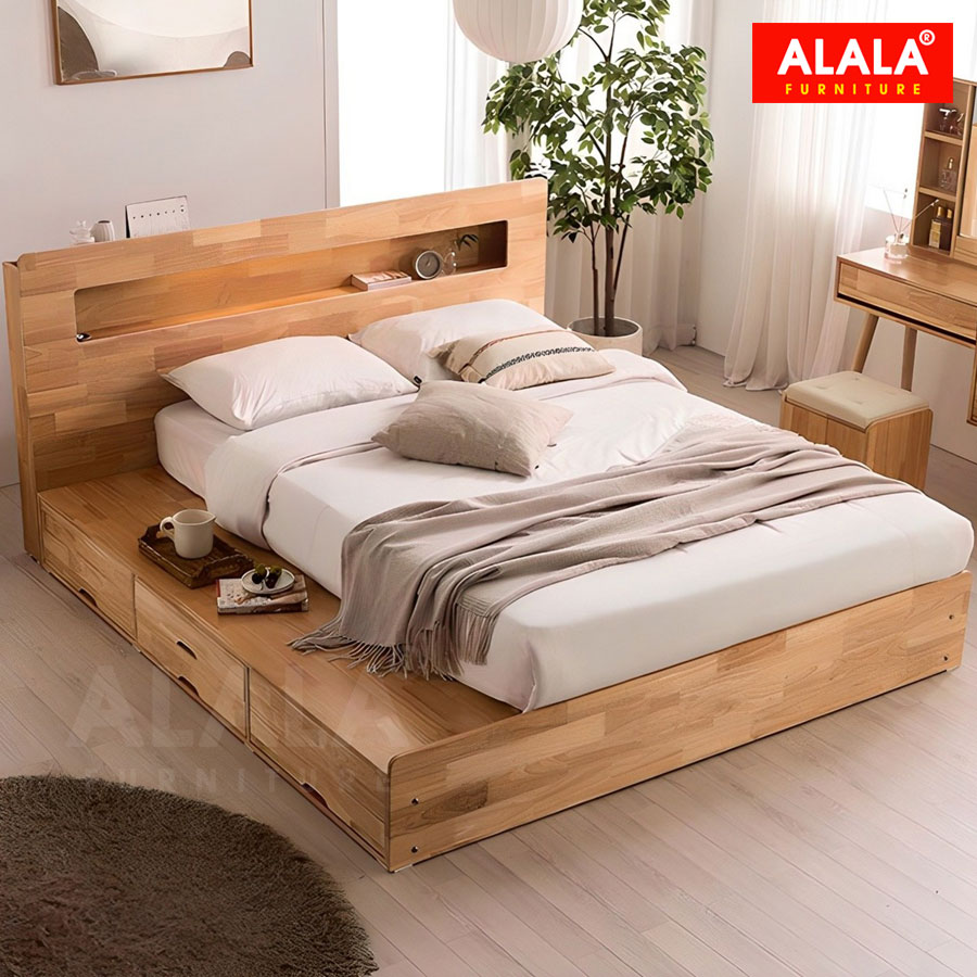 - Thiết kế thông minh, tinh tế và sang trọng, hiện đại Giường có 6 ngăn để được rất nhiều đồ, giúp tiết kiệm diện tích cho gia đình.