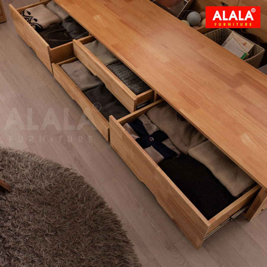+ Giường cao cấp được thiết kế 3 hộc kéo chứa quần áo, đồ dùng cá nhân được tích hợp bên dưới giường nên rất gọn gàng và tiện dụng và đặt biệt Giường còn tích hợp thêm 3 ngăn chứa đồ dưới giường, có thể mở lên, xuống dễ dàng, thuận tiện khi sử dụng và tiết kiệm diện tích cho gia đình.
