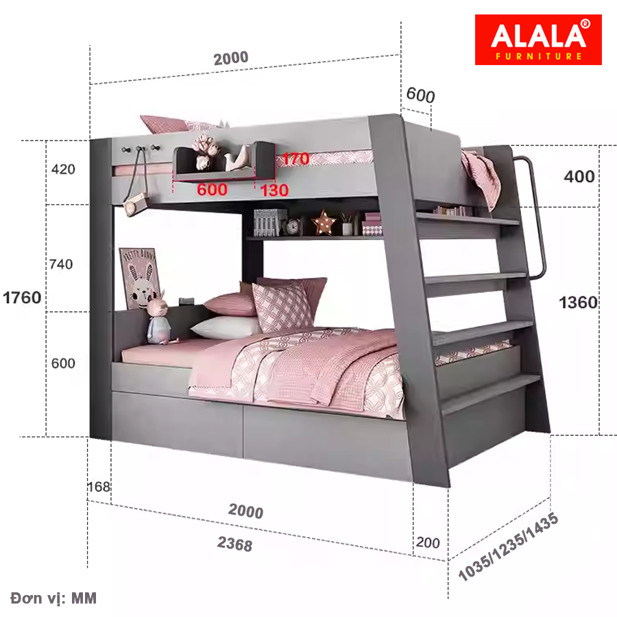 + Giường tầng cao cấp được thiết kế theo phong cách Châu Âu với màu sắc tự nhiên tươi sáng, trẻ trung, không chỉ giúp có được giấc ngủ ngon mà còn góp phần tô điểm cho không gian sống thêm sinh động, ấn tượng và dưạ vào nhu cầu và thói quen của ngươi tiêu dùng, sản phẩm được thiết kế thông minh được bố trí thêm nhiều ngăn trên đầu giường và bên hông giường để đặt sách truyện, đồng hồ, điện thoại hay các vật dụng trang trí theo sở thích cá nhân.