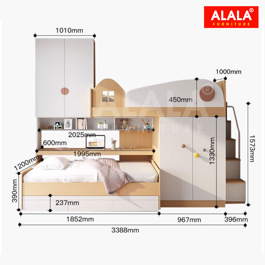 - Chất liệu gỗ ALALA tiểu chuẩn E1 cao cấp nhập khẩu Thái Lan được phủ Melamine chống thấm, an toàn cho sức khỏe.