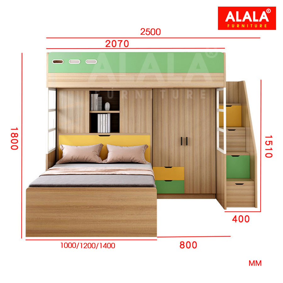 - Chất liệu gỗ ALALA tiểu chuẩn E1 cao cấp nhập khẩu Thái Lan được phủ Melamine chống thấm, an toàn cho sức khỏe.