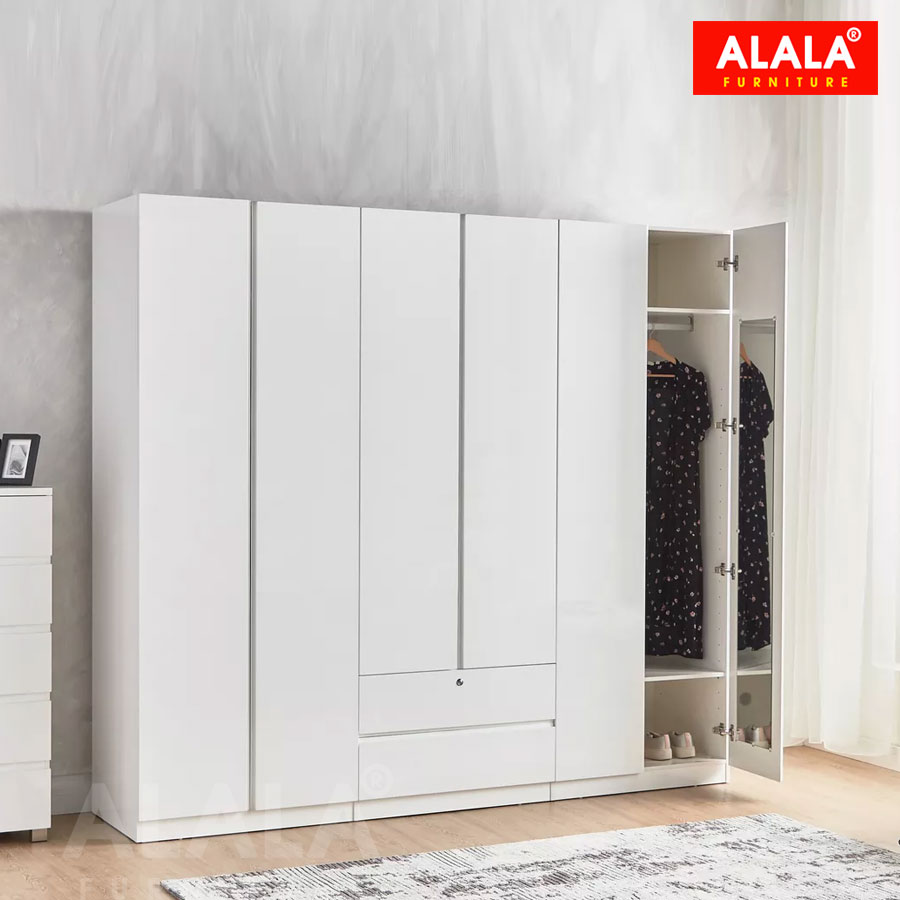 - Chất liệu: Gỗ ALALA đạt tiêu chuẩn E1 nhập khẩu Thái Lan được phủ Melamine chống thấm, bền bỉ và an toàn cho sức khỏe.