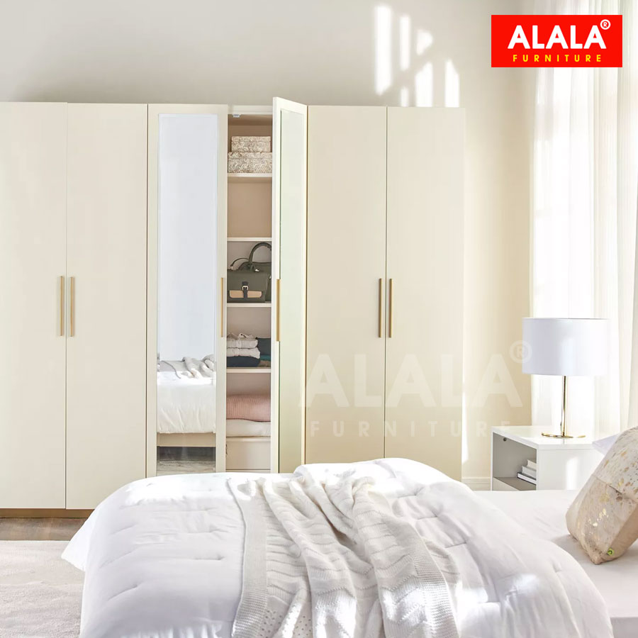 - Chất liệu: Gỗ ALALA đạt tiêu chuẩn E1 nhập khẩu Thái Lan được phủ Melamine chống thấm, bền bỉ và an toàn cho sức khỏe.