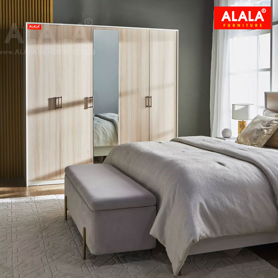 - Chất liệu: Gỗ ALALA đạt tiêu chuẩn E1 nhập khẩu Thái Lan được phủ Melamine chống thấm, bền bỉ và an toàn cho sức khỏe.