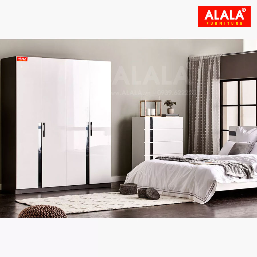 - Chất liệu: Gỗ ALALA đạt tiêu chuẩn E1 nhập khẩu Thái Lan được phủ Melamine chống thấm, bền bỉ và an toàn cho sức khỏe.